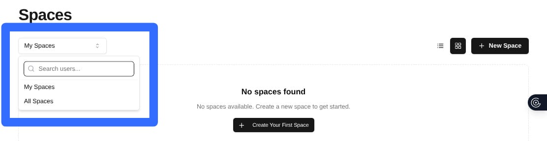 Within the Spaces feature, you can have your list as "My Spaces" or "All Spaces."