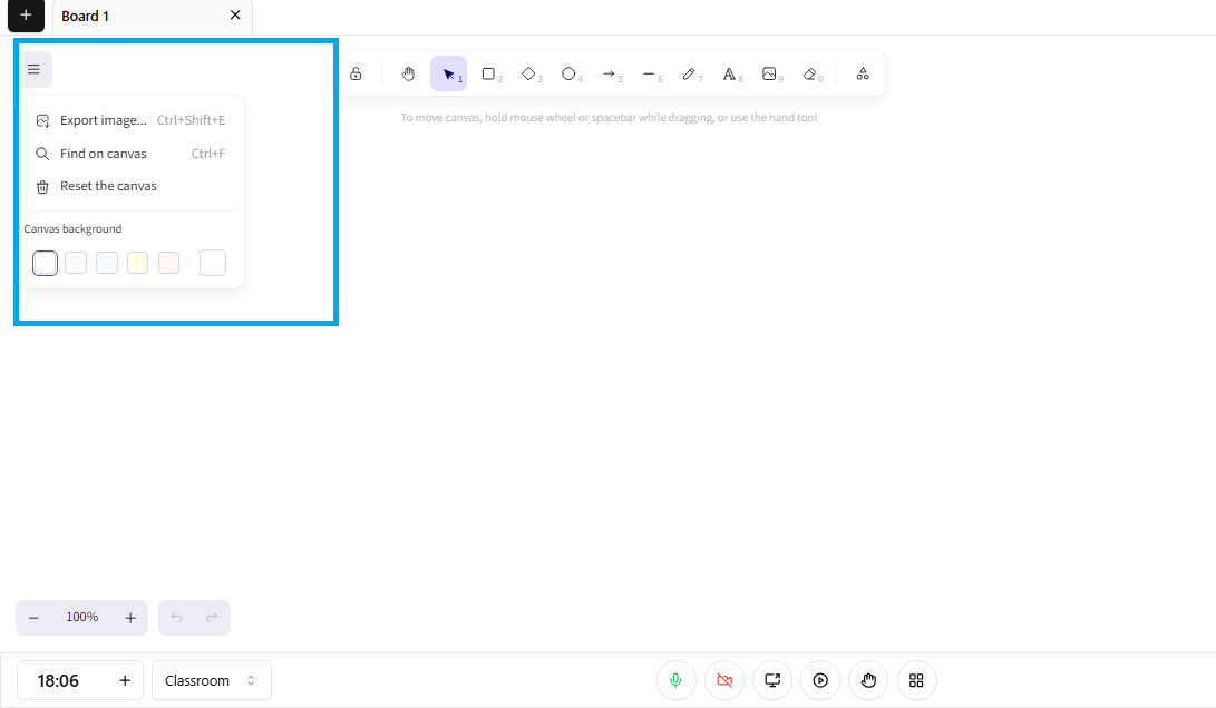 Canvas background color: Select a background color for your board (white, yellow, blue, etc.).