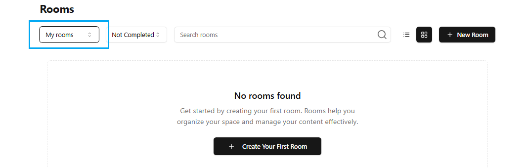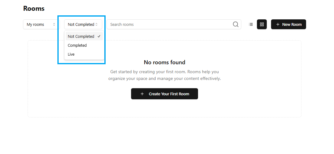 Use the Completed room dropdown option to filter rooms based on status.