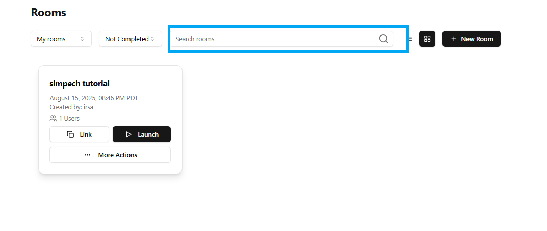 Make use of the Search field to instantly find a certain room you have created.
