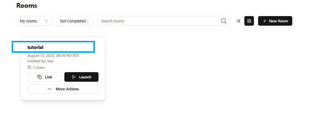 Here you will be able to view all the rooms you have created.