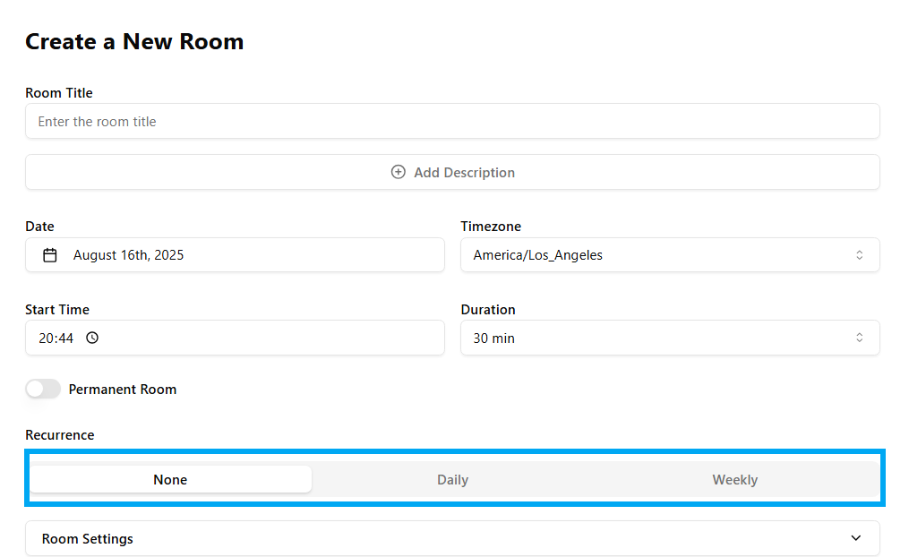 A permanent room in a virtual classroom site is a reserved online room that is active for good, enabling constant access to users. Unlike single sessions, a permanent room can be reused multiple times for meetings, classes, or discussions without having to redesign the room for each session.